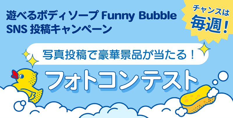 お風呂が遊び場になるボディソープ「ファニーバブル」を使った写真や動画をInstagramに投稿するだけで、豪華景品が当たるキャンペーンをスタートします!